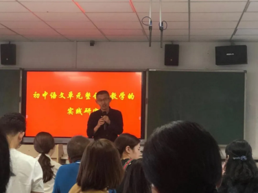 在单元整合课正成为各个公开课的“宠儿”之时,《初中语文单元整合化教学的实践研究》课题推广学校第四次研讨活动再次把单篇教学搬上了讲堂。11月18日下午,张寰宇名师工作室、王在恩名师工作室、瓯海区第四教育集团以及课题推广学校的全体语文教师,参与了本次研讨活动。本次活动由瓯海区仙岩第二中学承办,活动有两项议程,第一项议程是由汤乐娟、郑梅青、郑瑶婷三位老师带来的公开课,第二项议程是由王在恩老师与张寰宇老师带来的专题报告。