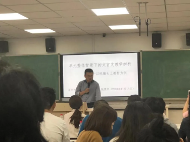 张寰宇老师分享的“单元整体背景下的文言文教学辨析”专题讲座强调统编教材体系中的文言文教学离不开统编教材文言文体系和单元整体教学体系。教师在教学过程中要把握文言文学习循序渐进的序列性要求,结合文本特质,把握文言词汇的学习要点。张老师指出统编教材,材料无限、支架无限,空间无限。而单篇教材也有其特殊的意义:有时候,回归就是出发,集中方能开放,单篇就是整体。