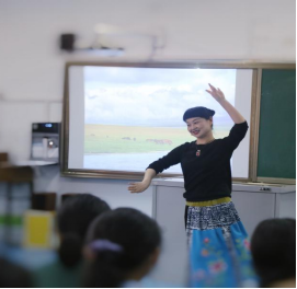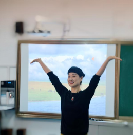 陈老师有着扎实的基本功,从开场的维吾尔族舞蹈律动、范唱、指挥都足以显出一名优秀音乐教师所具备的功底。在她的引领下,学生们饶有兴趣地投入到音乐律动,也了解到维吾尔族舞蹈的特点、代表性动作。在学唱环节,她通过曲谱接龙、角色转换等手段让学生掌握了全曲的曲谱演唱。学生们的歌声在陈老师的指导下一次次有了进步,在掌握第一声部的旋律后,陈老师又适时地加入第二声部。学生们在聆听中感受多声部交融的魅力,从而展开多声部合作之旅。