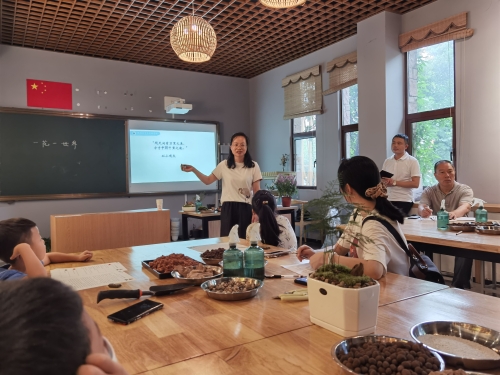 金龙雪老师携手翁万林老师给大家带来了第二节课例《一花一世界》,金老师在轻松的聊天互动中引出“盆景”这一主题,并对盆景的种类加以概括,随后翁万林老师现场演示微观盆景的制作过程。现场众人对盆景制作跃跃欲试,金老师耐心地讲解任务要求,大家以2人一组的形式开始根据抽到的主题场景进行乐玩盆景的创作。最后金老师引领各小组从题、景、盆、架等方面进行讲解与评价,最终评出最佳创作奖。