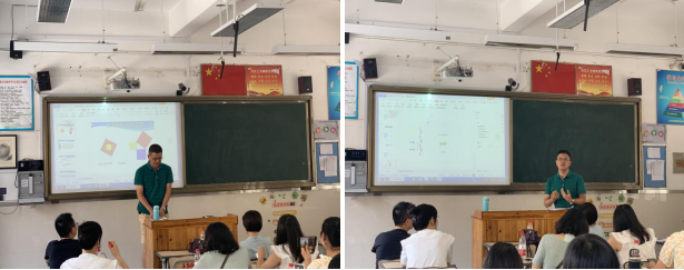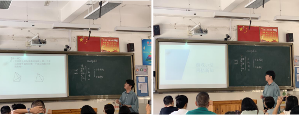 之后由梧田一中的周益敏老师带来的关于七上《6.1几何图形》的说课展示,周老师以培养学生的兴趣为目的,通过数学史里的故事,数学小游戏,蕴含几何图形的实体,让学生切身感受生活中几何图形的存在,很自然地将本节课的抽象的概念具体化地呈现出来,过程中,周老师很巧妙地再通过几个小问题,深度挖掘课堂的内涵。