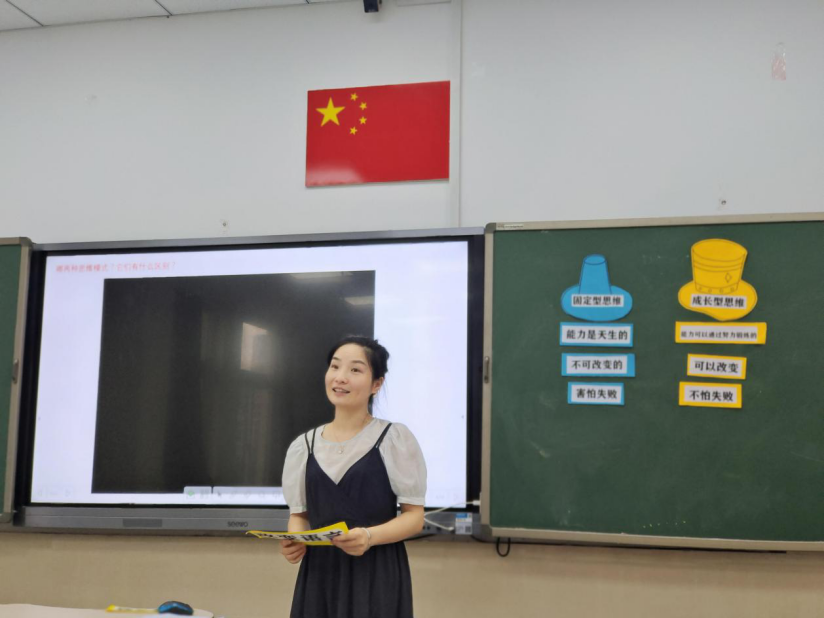 接着练秋云老师带来《改变思维,改变人生》的主题班会课,对比固定型思维和成长型思维,鼓励孩子学会积极的自我暗示,发展成长型思维。