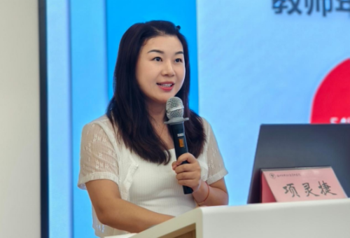 会上,两个学校代表作主题发言。温州大学城附属学校副校长项灵捷作《聚力求真 赋能“六品”》专题分享,指出学校依托“六品进阶”开展校本研修,“六品”是指成器型、成长型、成格型、成熟型、成业型、成功型教师,逐层进阶。学校利用数据调查来开展教师增值评价机制,搭建“磨课+展示”、“阅读+写作”、“自研+组研”进阶平台,以满足不同品级教师的专业发展,施行指向评价主体的三级审核,为教师提供过程性指导、针对性帮助和及时性留痕。