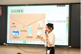 区第二外国语学校小学部数学教师钟施施执教“认识厘米”一课,她以古代测量方式的不足为引,激发了学生对“统一标准”的思考。通过一系列的活动,帮助学生建立“1厘米”的概念,引导学生通过“估一估”纸条长度,灵活应用“1厘米”和“几厘米”的空间观念,让学生在实践中掌握测量方法。