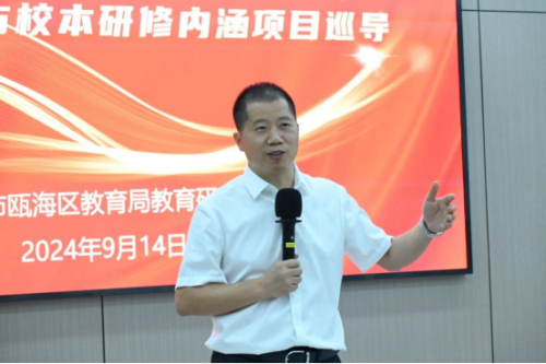 2024年9月14日上午,瓯海区教育研究院陈加仓院长携各学科研训员齐聚瓯海区第二外国语学校,进行主题为“基于未来教育的校本研修”的业务学习暨校本研修内涵项目巡导活动。此次活动聚焦学科教学创新与教师专业成长,通过一系列高质量的课例展示与深度研讨,为教育改革与未来教育探索注入新的活力。