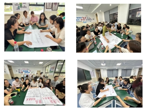 聆听完经验分享,为了更好地完成五年级新学期的教学任务,全体与会老师按教育集团分成十组,对如何复习提分进行组内研讨,探索如何开展新学期的教学工作。在将近半个小时的时间里,大家分享自己的经验,讲述自己的不足和困惑,在交流碰撞中,迸发出思维的火花。