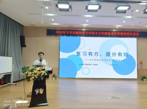 为落实立德树人的根本任务,帮助老师更好地解读教材,落实新课标理念,促进学习方式变革,提高教学的有效性。2024年9月20日,瓯海区小学语文五年级备课会暨教研组长会议在景山小学召开。来自全区的五年级语文老师和教研组长参加了本次活动。