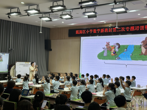 第一节课,瓯海区景山小学的胡碧老师以《用加法解决问题》为题,匠心独运,编织了一场知识与趣味的盛宴。从情景图入手,引导学生从阅读理解,分析解答,回顾反思三个步骤逐一理解解决问题。通过例题,学生接触了基础的加法解决问题模型,通过不同情景的转换,学生对于加法模型有了进一步认识。随后进行的利用大括号与问号编题等活动,学生在说、画、写等过程中对于加法模型认识更加全面。整个过程中,胡老师除了渗透数学知识,还始终坚持课堂常规教育,时刻提醒学生做好学习常规。同时借着课中操,学生们随音乐摇摆,在笑声中重启了精气神。