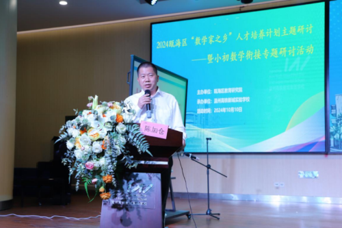 2024年10月10日,2024瓯海区“数学家之乡”人才培养计划主题研讨暨小初数学衔接专题研讨活动在温州高铁新城实验学校顺利举行。瓯海区教育局党委委员、瓯海区教育研究院陈加仓院长,瓯海区教育研究院中学教育教研室白福清主任,瓯海区教育研究院小学教育研究室金海跃主任,以及全区中、小学数学教研组长,骨干教师共200余人参会。