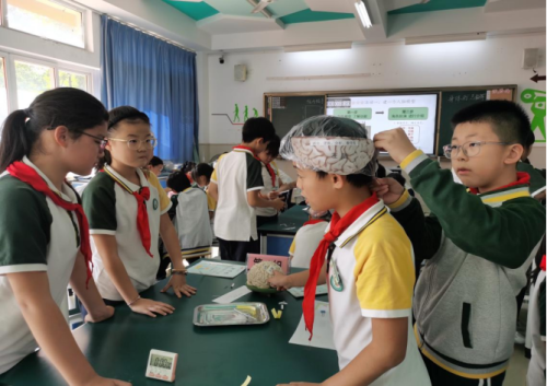 虞芒老师和五(2)班的孩子们带来了一堂生动有趣的科学课——《身体的总指挥》。课堂伊始,虞老师以“最强大脑”游戏为引子,迅速点燃了孩子们的学习热情,并激发了他们对大脑功能的好奇心。通过“建一个人脑模型”和“人脑角色扮演秀”两个环节,学生们不仅在游戏中学习,在学习中思考,更深刻地理解了大脑的结构与功能。在“人脑体验馆”活动中,学生自主探索发现大脑的不同部分是如何协同工作、共同完成任务的奥秘。课程尾声,虞老师巧妙地将两张班级课表进行对比,引导学生们深入探讨不同学科对大脑各部分使用程度的影响,从而领悟到劳逸结合的重要性,培养了他们的责任感和积极态度。