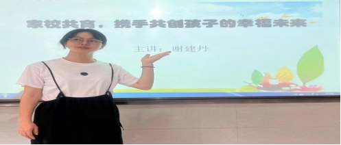 为了进一步加强家校合作,共同促进孩子的健康成长,工作室活动还特意安排了一场由谢建丹老师主讲的“家校共育,携手共创孩子的幸福未来”为主题的家校共育讲座。此次讲座由工作室主持人谢建丹老师带来,她就如何建立良好的亲子关系、如何进行有效的家校沟通等话题进行了深入探讨。讲座中,谢老师通过生动的案例和实用的建议,向家长们传授了如何与孩子建立信任、如何倾听孩子的内心声音、如何引导孩子健康成长等宝贵经验。同时,谢老师还强调了家校合作的重要性,呼吁家长们积极参与学校的教育活动,与学校共同为孩子的成长创造更加良好的环境。