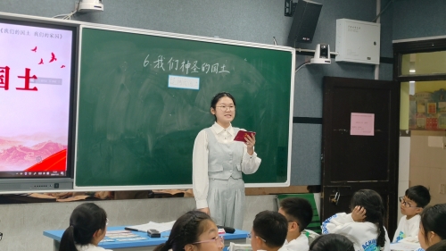 第一节课由瓯海区外国语学校的谢婷婷老师执教《我们神圣的国土》第一课时。