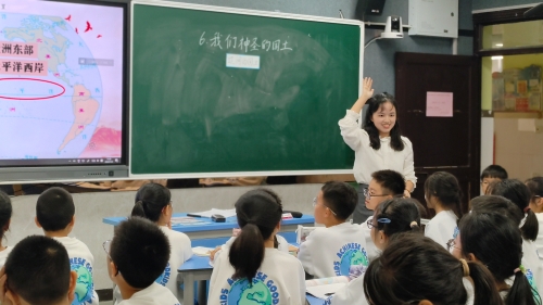 第二节课由瓯海区潘桥第二小学的陈柠檬老师执教《我们神圣的国土》第三课时。