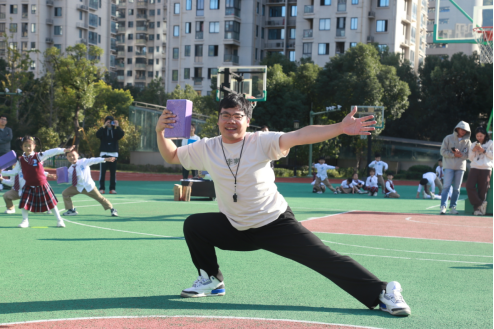 第二位上课的是来自瓯海外国语学校的李雄老师,打破常规用激情四射的专项热身操迅速吸引了同学们的注意力,激发了大家对体育活动的热情。来练习过程中,课堂气氛热烈,同学们积极参与、热情高涨。每个同学都全身心投入到课堂中,在练习和游戏环节中展现出了顽强的拼搏精神和对体育的热爱。