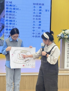 活动伊始,教师们便沉浸在了一片浓厚的教研氛围中。卢慧慧老师、潘梓慧老师、麻琦怡老师和朱李烨老师轮番上阵,带来晨锻情境创设分享。从投掷区的精准挑战,到野战区的刺激冒险;从平衡区的稳健前行,到球类游戏区的欢乐互动,每一个区域都充满了匠心独运的设计与思考。老师们不仅详细阐述了各自的布局理念,还分享了在实际操作中积累的宝贵经验,让在场的每一位教师都受益匪浅。