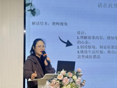 潘伊甸老师带来了题为《绘本的魅力:如何在幼儿园有效利用绘本进行教学》的精彩分享。潘老师结合团队赛课的经验,以《好消息坏消息》为例子,深入浅出地讲解了如何在日常教学中巧妙融入绘本和哲学思维,以激发幼儿从事物的两面性换角度看问题。