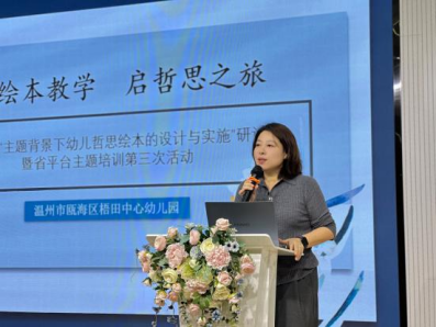 最后,瓯海区梧田中心幼儿园园长潘素凡老师对今天的活动进行了点评。她高度赞扬了三位老师的精彩演绎,同时对进一步优化完善绘本教学提出了建设性意见建议。