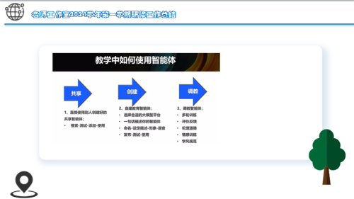 4.对当前比较热门的教育智能体的相关知识进行了介绍。让大家进一步了解了做么是“教育智能体”,其功能,主要应用模式及发展趋势,鼓励大家在以后的教学中多利用“智能体”(AI)开展教学,不断提升教学效率及质量。