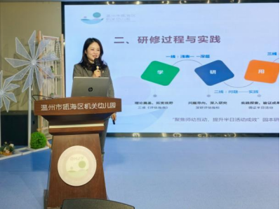 上午,瓯海区第二十幼儿园的业务副园长黄晓秋老师为大家带来了讲座《学·研·用·思——基于循证实践视角下的园本研修》。黄老师深入浅出地讲解了循证实践在幼儿园教育中的重要性,以及如何运用循证实践的方法开展园本研修,为教师们提供了新的思路和启示。