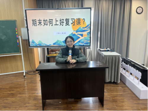 最后,工作室领衔人黄小嫘作《期末如何上复习课》专题讲座。强调教师在教学中要深入研究教材,分析学情,以新课程标准中学生核心素养培养目标为导向。聚焦课堂,通过“教、学、研、评”的一致性,开展深入探究。通过有效的教学活动,引导学生梳理构建知识结构网络,促进学生将“知识结构”转化成“认知结构”,培养应用意识和模型学习,落实学生核心素养培养。