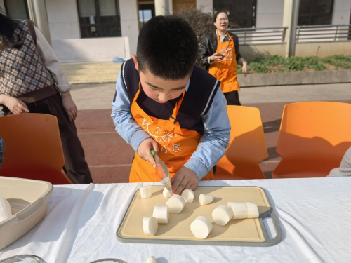 在老师们的悉心指导下,孩子们开始了酱萝卜的制作之旅。他们小心翼翼地清洗萝卜、切片、腌制,每一步都充满了专注与热情。通过动手实践,孩子们不仅学会了酱萝卜的制作方法,还深刻体会到了劳动带来的快乐与满足。