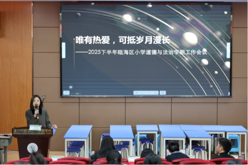 为深入推进基础教育课程教学改革深化行动,进一步促进我区小学道德与法治学科教研水平提升,正确理解和把握新教材编写思路和体系结构,践行新课标理念,2025年2月28日,瓯海区小学道德与法治新教材使用专题研讨活动暨教研组长会议在瓯海区外国语学校举行。