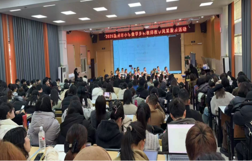 为展示优秀乡村教师的教学风采,探寻乡村教学质量提升之路,共促城乡教育均衡发展,2025年2月27日下午,温州市小学数学乡村教师教学风采展示活动在温州大学附属南白象实验小学顺利举行。此次活动由温州市小学数学教研员兰衍局主持,来自各县(市、区)小学数学教研员、教师代表200余人参加。