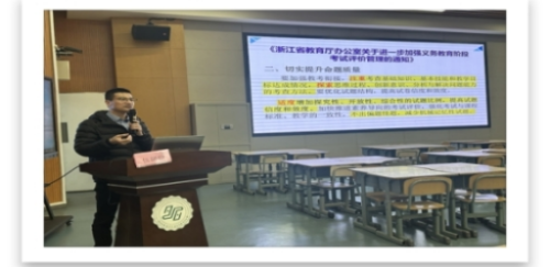 随后,区教研员伍阔伦老师在《基于2024省统考的的思考与教学建议》专题讲座中,和与会老师传达了《教育强国建设规划纲要(2024-2035年)》、《中小学科学教育工作指南》等文件,结合2024年省中考试题及典型案例,指明了素养立意的的科学教学应关注教材内涵,导向规范教学;面向全体学生,夯实学科基础;创设真实情境,聚焦问题解决,注重创新思维,促进理解与迁移。并对2025上半年初中科学教研工作作了说明。最后,区教育研究院董爱敏副书记部署了2025年中考备考和做好科学教育加法的重点工作,强调问题 任务 项目促进有效复习课的标准,为各位组长和九年级老师明确了工作方向和重点任务。