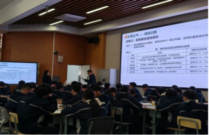 首先,瓯海区第二实验中学的林迅帆老师为我们带来了一节精彩的课堂展示——《溶液的复习》。课程伊始,林老师创设茶饮创业者制作茶饮这一情境,引导学生观察红茶外观,讨论其作为溶液的特性,复习溶液的组成和性质,借助茶饮料产品评价量表,帮助学生系统化地思考产品设计的各个方面,并以此作为本节课产品的质量检验表,串联整节课的三大任务“甜”、“酸”、“冰”。随后,学生们进入实践环节,配制茶饮。学生们不仅复习了溶液、酸碱盐反应的核心知识,还通过实践任务和创新思维培养,将科学原理应用于实际问题的解决,理解了科学与技术在工业生产中的应用,在动手实践中感受到科学的魅力,体会到工程项目的实际应用,为未来的创新与实践奠定了基础。