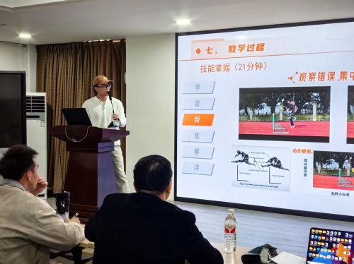 周瑞豪老师进行了《跨栏跑练习方法5》说课展示,分享了如何利用视频分析软件来分析学生的运动技巧,帮助学生更直观地理解动作要领。