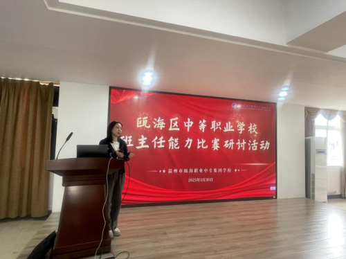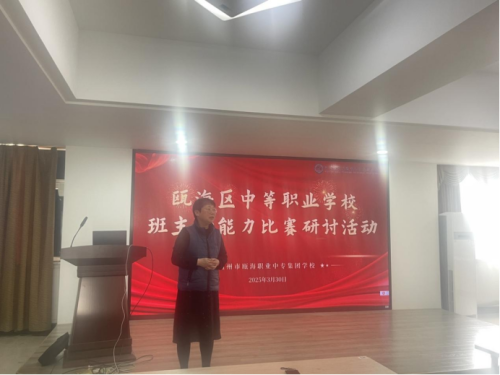 为深入落实立德树人根本任务,推动中等职业学校班主任队伍专业化建设,提升区域中职学校学生管理和德育工作水平,3月30日上午,瓯海区中等职业学校班主任能力比赛研讨活动在我校后栋四楼会议中心顺利举行。本次活动由瓯海区教育研究院主办、陈超超名师工作室承办。