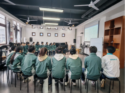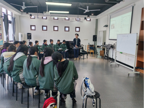 随后,林瓯奇老师带来声乐课《故乡的小路》。从最基础的发声位置、气息运用,到歌曲中蕴含情感的诠释,林老师都进行了细致的指导。他亲自示范,从轻声哼唱到完整演绎,每一个步骤都力求让学生精准掌握,学生们在她的引导下,逐渐在歌声中领悟到声乐艺术那深沉而动人的精髓。
