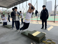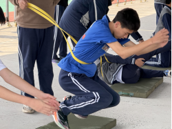 进入实践环节,吴老师巧妙地将弹力带融入立定跳远练习中。他根据学生的身体素质和运动能力,将学生分成不同小组,并为每个小组制定了个性化的练习方案。在练习过程中,吴老师穿梭于各个小组之间,耐心地指导学生纠正动作,及时给予鼓励和肯定。学生们在弹力带的辅助下,更加直观地感受到了腿部力量的发力方式,课堂氛围热烈而有序,学生们积极参与,尽情享受着运动带来的快乐。
