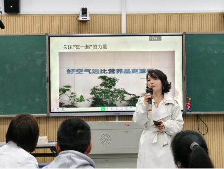 最后,她还引用邱曙光的“好空气远比营养品更重要”的话与家长共鸣。