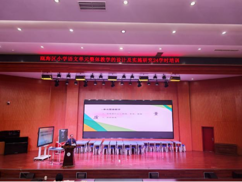 为深入贯彻落实新课程标准理念,推进小学语文教学改革,提升课堂教学效率与教师专业素养,2025年4月15日,瓯海区教育研究院主办的“瓯海区小学语文单元整体教学的设计及实施研究”24学时培训活动在瓯海区外国语学校拉开帷幕。黄建跃名师工作室成员全程参与,浙江省特级教师单志明老师全程指导,通过课例展示、专题讲座与专家评课等多元形式,共探单元整体教学的创新路径。