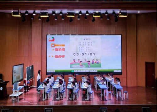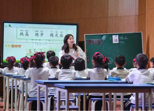 接着,潘力宏老师带来课例展示《操场上》。潘老师注重引导孩子们在语境中识字。潘老师结合课文插图“操场上”的体育活动场景(如“跑步”“拍球”),让学生在真实语境中认读词语,建立音、形、义的关联,体现“生活万花筒识字天地宽”的理念。通过提问“说一说你喜欢什么体育活动”,引导学生用新词表达生活经验,强化语言运用。本节课,潘老师通过设计图片识记、动作识记、归类识记等方式,将集中识字和分散识字有机融合,孩子们在潜移默化地过程中记住了生字,大大提高了识字效率。