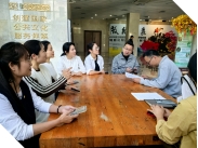 活动以"展厅即课堂"的创新形式展开。在热带雨林主题展区,教师们驻足观摩写意花鸟精品,重点研习画家对孔雀蓝、朱砂红等民族色谱的运用技法。高见策老师现场演示"色彩提取教学法",指导参训教师用色卡采集画作中的特色配色,为校本课程开发积累素材。