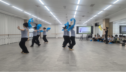 李丽老师的《走进胶州秧歌》将国家级非遗请进课堂。她在“技艺传授+文化溯源”的双轨教学中,带领学生跨越时空触摸清咸丰年间流传至今的齐鲁舞韵。课堂上,从“碾、拧、抻”动态详解到“扇女”“小嫚”的灵动演绎,学生如踏历史长河,在“稳中浪、浪中俏”的身体语言中深入理解“三弯九动十八态”背后的文化传承密码,体味中华传统舞蹈艺术的生命脉动。