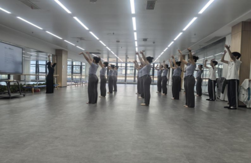 在陈琼老师的《“扎西德勒”的祝福》弦子舞课堂上,高原的纯净与虔诚在舞动的衣袖间流淌。她引领学生沉浸于弦子音乐的悠扬情境,通过身体的律动与延展,将源自雪域的祝福化为肢体语言。当“扎西德勒”的歌声响起,学生用身体的旋律咏叹民族文化的深邃与温情。