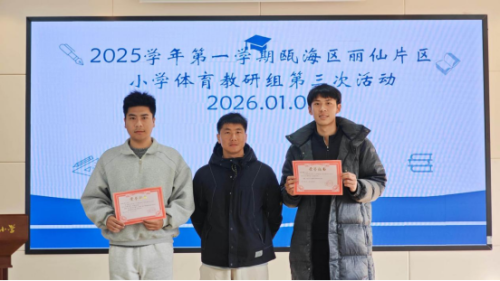 为提高老师们对体育与健康学科新教材的理解和实践能力,加快提升体育教学“三有四化”课堂教学转型,推动小学体育教学实践与科研能力双向发展,提升教师专业素养,丽仙片区小学体育教研组于2026年1月8日下午在丽岙华侨小学举行本学期第三次主题研修活动。本次活动由金贤克老师主持,片区小学体育教师齐聚一堂,共同聚焦双手头上前掷实心球教学实践与体育论文写作理路两大核心内容,在思维碰撞与经验分享中收获满满。