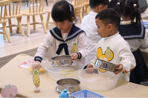 鲁梦圆老师以“筛豆子”这一生活化的操作为核心,引导幼儿在真实的筛动与观察中探索物体大小的分离奥秘。活动从“怎样能把豆子能分开”的好奇心出发,鼓励幼儿亲手尝试,感知筛孔大小与筛选结果之间的关系;进而通过分组竞赛的游戏情境,让幼儿在合作筛豆子的过程中体验团队协作、沟通与问题解决的乐趣。