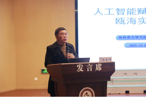 专题讲座环节更是精彩纷呈,为参会教师带来前沿的教育视野与实践指引。来自瓯海区教师教育研究院研训员陈春辉以《人工智能赋能学校体育的瓯海实践》为题,系统解读了瓯海在 AI 赋能体育教育改革中的理念革新与实践探索,从千万级资金投入构建智能平台,到打破场地与设备限制的持续尝试,展现了区域教育创新的决心与魄力。