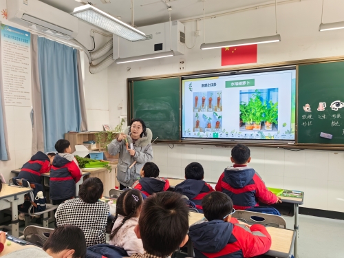 活动以精彩的观摩课拉开序幕。李若思老师带来一年级复习课《用我们的身体结构去观察植物》,以趣味互动引导低年级学生活用感官探索自然,筑牢科学观察基础。金金老师执教《太阳系大家庭家庭实验引导课》,巧妙搭建课堂与家庭的桥梁,示范如何引导学生在家开启宇宙探秘之旅。