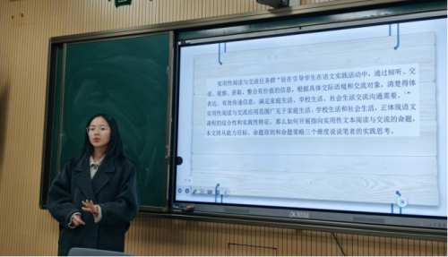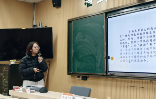 陈玮老师带来了她的论文《改·串·延:实用性阅读与交流视域下第二学段阅读命题策略探究》。陈老师提出的“改·串·延”策略为第二学段命题提供了新思路。“改”强调对阅读材料的灵活处理,“串”注重阅读内容的逻辑串联,“延”则鼓励将阅读所得延伸至实际交流。陈老师提出的策略旨在通过科学命题,促进学生实用性阅读与交流能力的发展,实现学以致用。