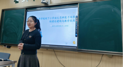 马玲莹老师带来了她的论文《儿童哲学视域下小学语文思辨能力培养的理论建构与教学实践》。马老师聚焦儿童哲学与小学语文思辨教学的融合,以《“精彩极了”和“糟糕透了”》为案例,从破解课堂思辨缺失困境切入,阐释二者理念契合点,展示“矛盾设问—文本对比—延伸建构—价值落地”的多维思辨课堂设计路径,最终彰显该融合模式在学生认知升级、教师角色转型、回归育人初心三方面的育人价值。