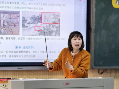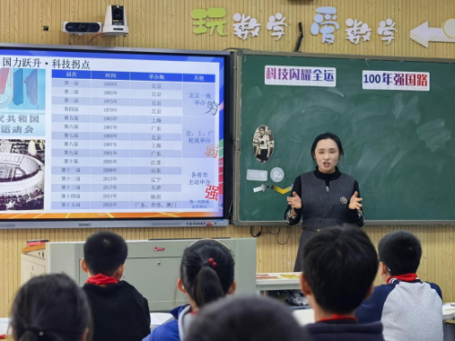 活动在下午1:30准时开始。首节展示课由瓯海区艺术实验小学的叶佳惠老师执教,课题为《科技闪耀全运,66年强国路——小学六年级科技强国主题班会》。叶老师以“全运会中的科技元素”为切入点,引导学生通过小组合作、资料搜集、情景模拟等方式,深入理解新中国成立以来科技发展的历程与成就,激发学生的民族自豪感和强国志向。课堂互动热烈,体现了探究式班会“以学生为主体、以问题为导向”的设计理念。