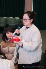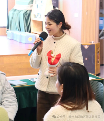 活动中,成员们围成大圈传递玩偶,鼓声停止后的“幸运挑战者”完成原地自转6圈、沿直线平稳走到终点的平衡挑战后,结合自身教学经历,分享了与环境、生活教育相关的小故事,有环创设计的灵感瞬间,也有幼儿自理能力培养的成长案例。