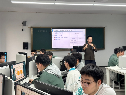 第二节课由金相旺老师执教《堆码方案设计》。金老师结合仓储管理实际,利用AI图像识别与算法推荐功能,让学生上传不同规格的货箱,系统自动生成最优堆码方案。学生分组讨论、动手模拟,并在AI辅助下对比不同方案的稳定性与空间利用率,课堂气氛活跃,体现了技术与专业的深度融合。